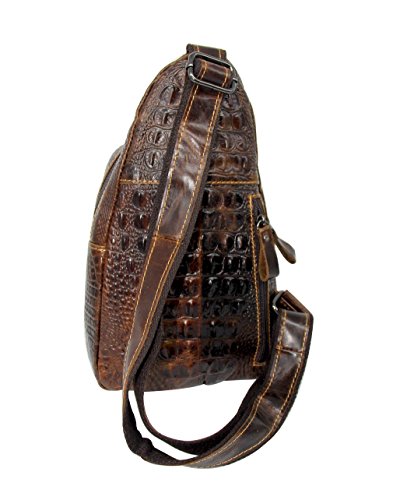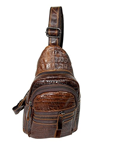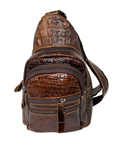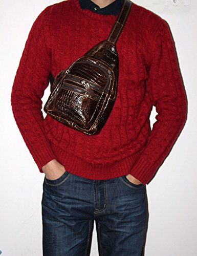 -. Title : Men's 100% Genuine Leather Shoulder Bag Cowhide Crossbody Sling Hiking Satchel Chest Bags Pack Small Backpack