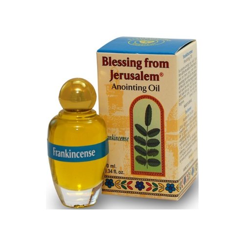 - This anointing oil is made from olive oil and fragrant frankincense and comes inside a small sized glass bottle designed to echo ancient oil flasks used in the Land of Israel.