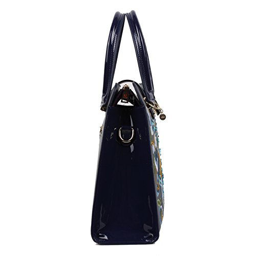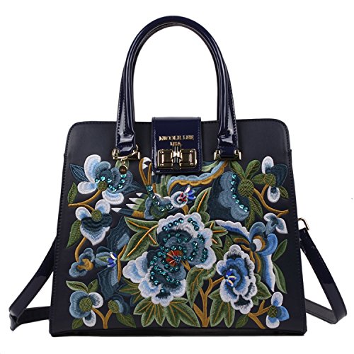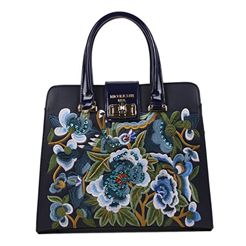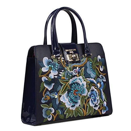 -. Brand : Nicole Lee -. Color : Navy -. Department : womens -. EAN : 0847161004030 -. Feature : Made of long lasting cruelty free Vegan Leather / Capture all the attention with the stunning embroidered design on front that shows fashion and elegance / Keep your belongings secure with 2 closures one being a twist- lock flap top and the main zipper closure compartment / Carry at your best comfort with the 5" inch drop handles or the 44 "- 53" inch attachable and detachable shoulder strap / Interior Features: Large main zip compartment, zip wall pocket with NL nameplate at back, vegan leather key chain strap, double open wall pockets at front, and NL polka dot logo nylon lining -. Model : FLW11821 -. PackageQuantity : 1 -. ProductGroup : Shoes -. ProductTypeName : HANDBAG -. Size : One Size -. Title : Nicole Lee Ibolya Floral Embroidered Satchel Bag -. UPC : 847161004030