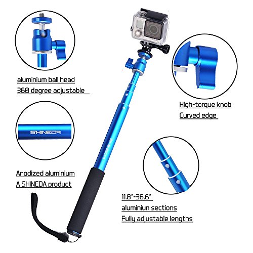 MATT COLOR - Anodized matt surface tubes, a proud SHINEDA product. Color: Blue .The GoPro adapter is packed in the box, please check thoroghly the inside of the box and find it. Some customers didn't find the adapter firstly but later they did by unpacking the box totally. If this is used for water sports, please be kindly informed that it does NOT float, and please always wash it with clean with clean water after underwater use.
