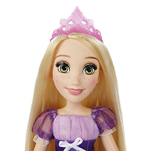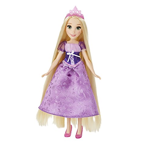 This doll is excited to get ready for the ball! The Long Locks Rapunzel fashion doll appears as radiant as ever in her iconic ball gown. Rapunzel's long and flowing, silky hair and oversized brush make for tons of hairstyling fun! Girls will also enjoy styling the doll's hair with a shimmery wear-and-share hair extension and a decorative clip. Copyright Disney Hasbro and all related terms are trademarks of Hasbro.Feature