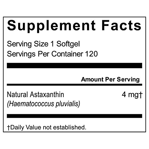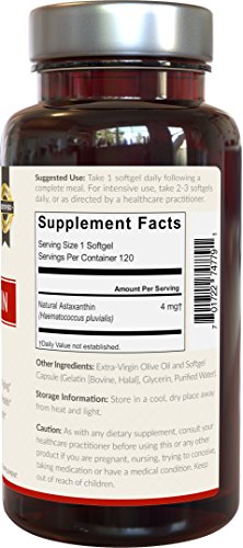 4mg of Powerful Astaxanthin per Serving - each small, easy-to-swallow softgel features 4mg of astaxanthin with 120 servings per bottle.