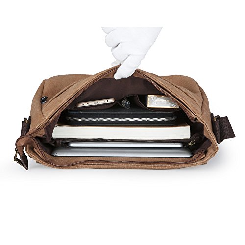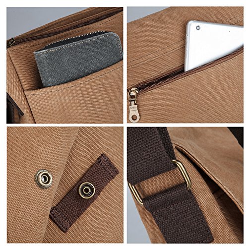 -. Feature : MATERIAL:surface is canvas,the inner is Polyester fiber. the material is comfort and breathable. / SPECIFICATIONS: the size is 12.2"*9.8"*3.9" and the weight is0.815KG. / MULTIPLE STORAGE PURPPOSE MESSENGER BAG: 1 main zippered compartment with a back pocket and two front pockets.there are some pockets inside for phone,wallet,Ipad mini and pen . One inner barrier to organize your essentials. / WARRANTY: All of our bags have 1-YEAR WARRANTY. Any problems with your bag, please contact us. We will solve it. / Canvas bags are cotton fabrics, so don't use detergent containing bleach, and it's better not to use fluorescent ingredients, otherwise the bags will fade.
