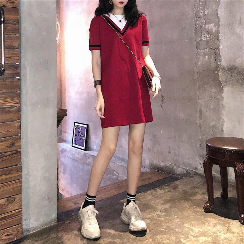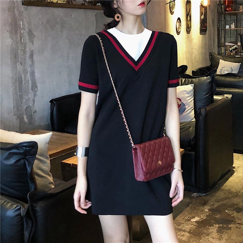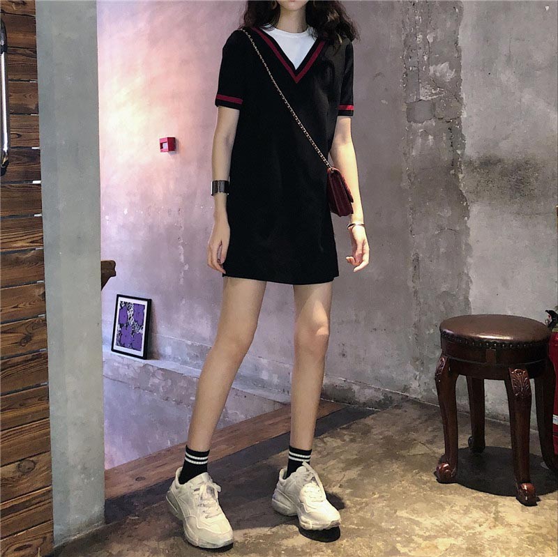 ホワイトTシャツとボーダーデザインワンピースの重ね着風デザイン♪