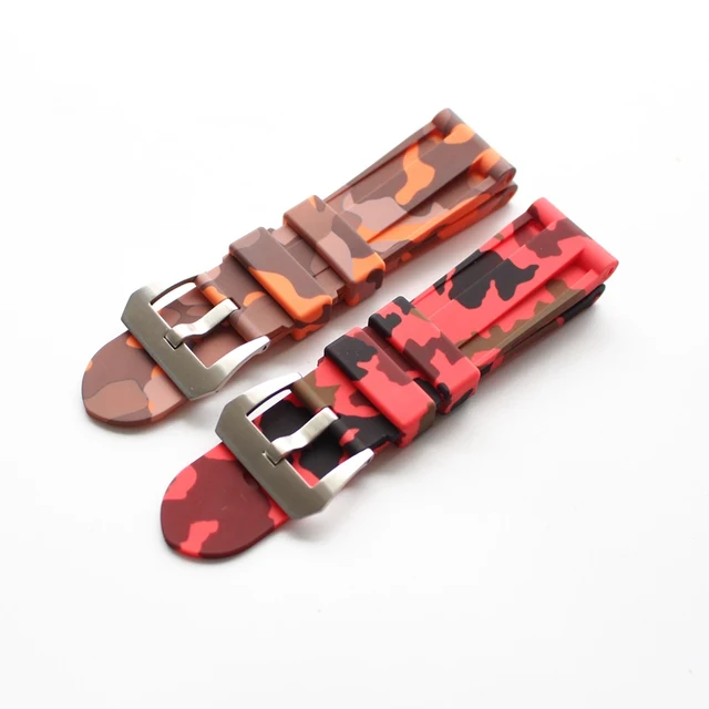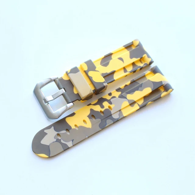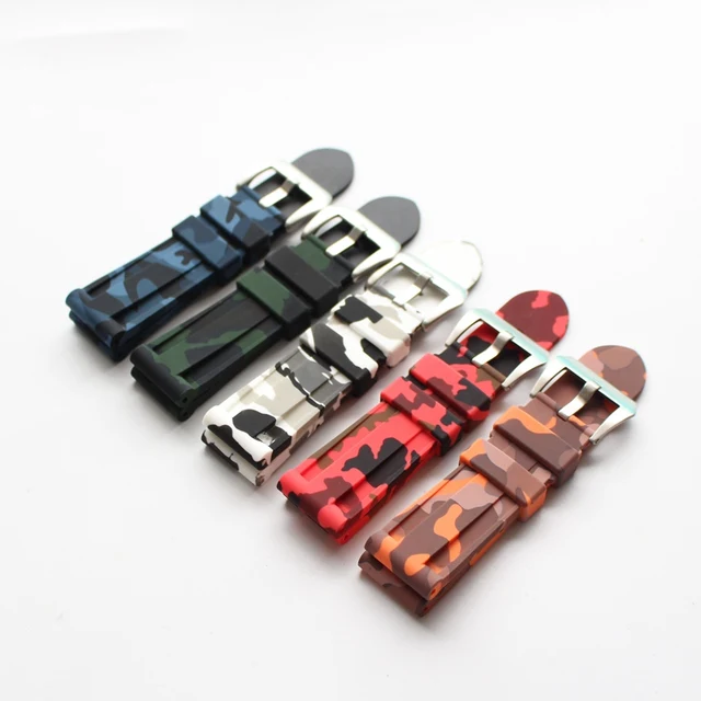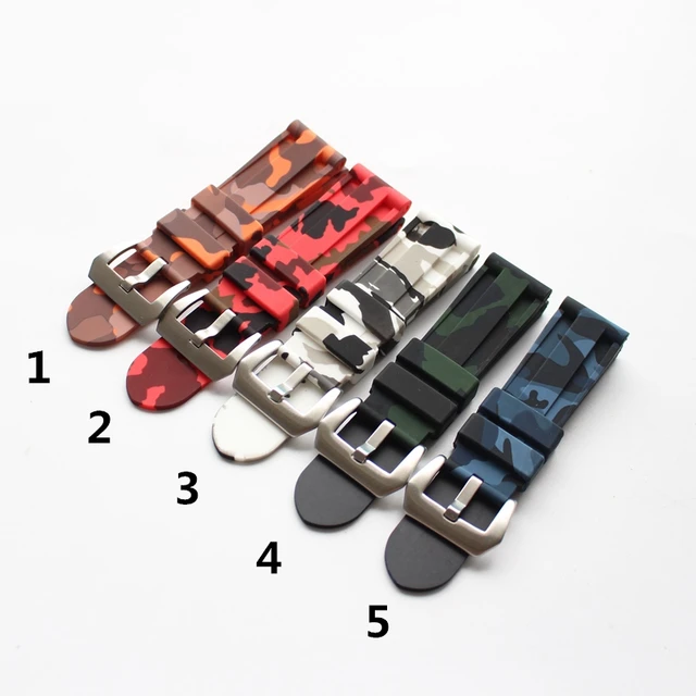 | [해외] TJP 새로운 24 미리메터 녹색 회색 블루 카모 방수 다이빙 실리콘 고무 시계 줄 교체 PAM 시계 스트랩 또는 수 로고 |