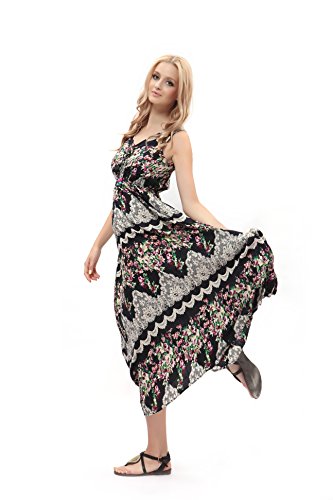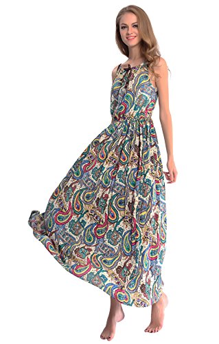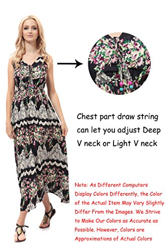 Bohemian printing long dress :Deep V-neck, Sleevenless, Full Length,elastic waist line,Wrinkle Resistant,Soft,Silky, Comfortableand Flattering