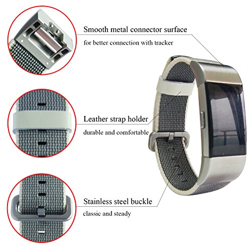Fitbit Charge 2 Replacement Nylon Bands, KisFace Accessories Wristbands Woven Nylon Series with Metal Connector and Buckle Multi Color Choices