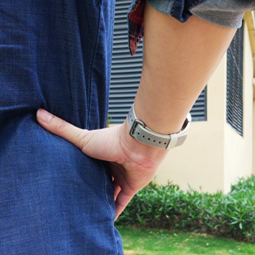 MATERIAL&DESIGN:High quality woven nylon band made from hundreds of threads,metal connectors and buckle,leather loop as decor for better show of your tracker