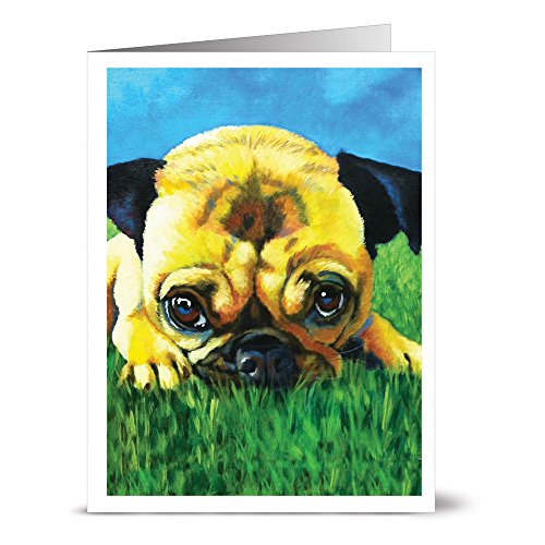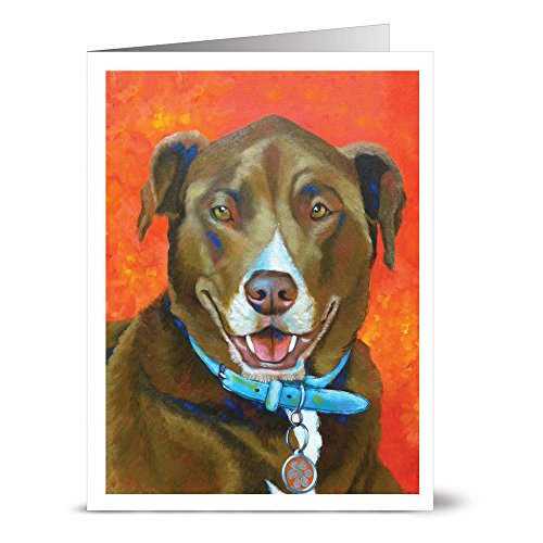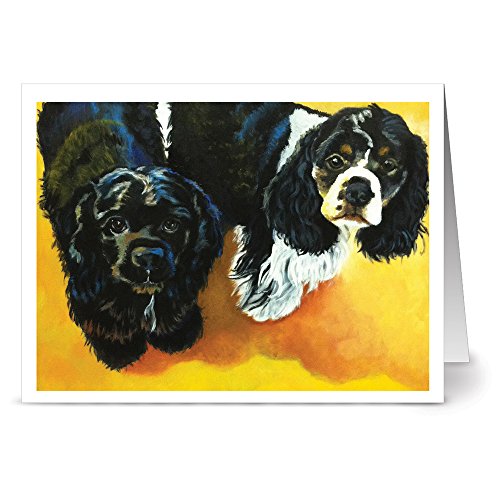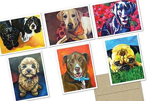 -. Feature : Celebrating man and woman's best friend with this whimsical set of notecards / Set features six breeds: Cocker Spaniel, Black Lab, Pug, Golden Retriever, Pit Bull, and Cockapoo / Beautifully rendered from original oil paintings, the set includes ivory envelopes / Notecard size: 6.125" x 4.625" - Heavy 15 pt. card stock. Made in the USA. / Notecards are blank inside. High quality gloss finish on card exterior.