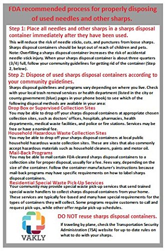 (Vakly)/Health Care/Diabetes Care/DIRECT FROM USA/Sharps Container 2 Gallon - Plus Vakly Biohazard Disposal Guide (1 Pack)