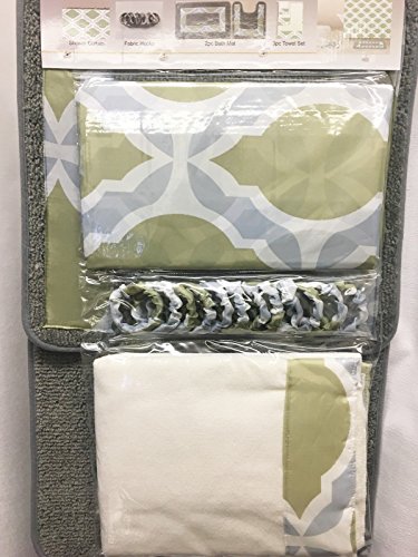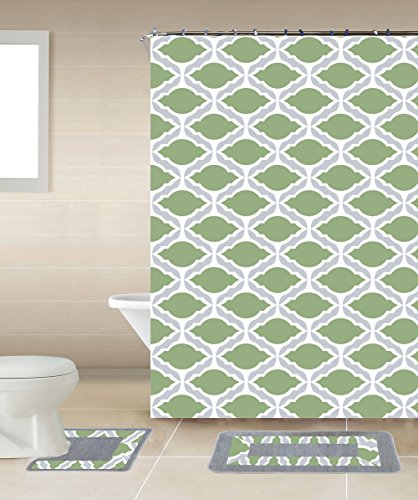 -. Title : GorgeousHome 18 PC Design Pattern Bathroom Set, Includes Shower Curtain with Fabric Plastic Hooks Bath Mats & Towels