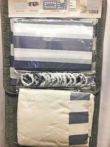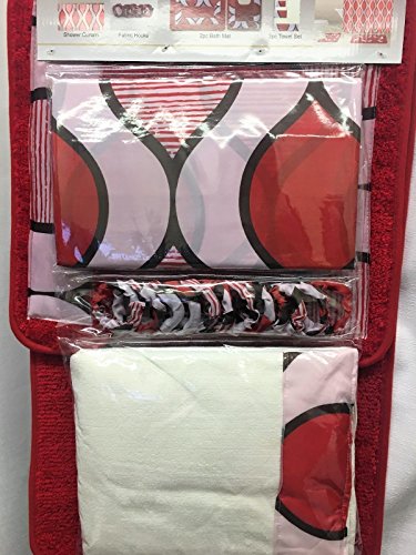 -. Feature : 18 Piece Bathroom Sets / Includes: 1 Shower Curtain ( 70"x70" ) 1 Toilet Contour Rug ( 17"x17" ) 1 Bath Mat ( 17"x28" ) 12 Fabric Hooks / Includes (3) Towels: 1 Bath ( 48"x24" ) 1 Hand ( 24"x12" ) 1 Wash Cloth (12"x12") / Antislip Rubber Backing, 100% Polyester / Care Instructions: Machine Washable in cold water.