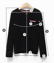 | 尺码 | ①肩宽 | ②胸围 | ③下摆围 | ④袖口围 | ⑤袖长 | ⑥前衣长 | ⑦后中长 | ⑧上臂围 | ||