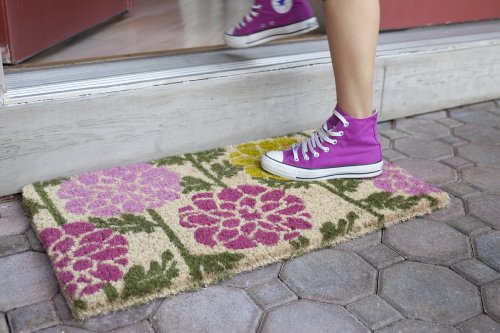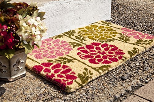 -. Title : Mid Thickness Coir Dahlias Outdoor Rectangular Doormat