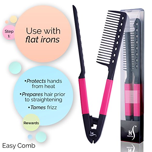 Herstyler V Shaped Easy Comb, Hair Straightening Tool for Straighter Tresses Without Stresses, Hot Pink (Pack of 2)