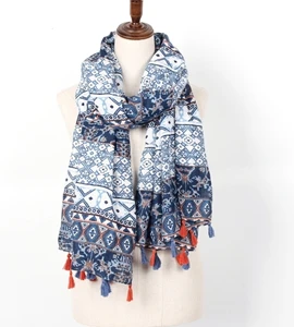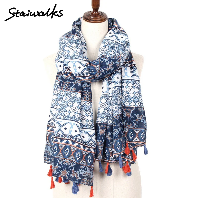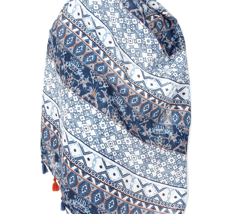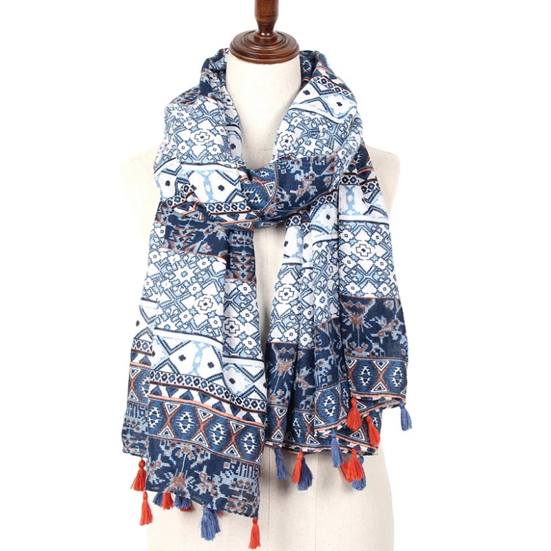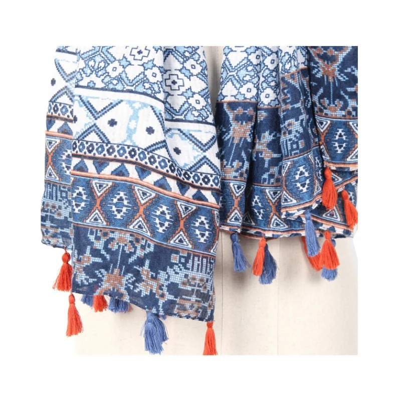 Name:Boho Aztec Tribal Floral Scarf With Tassels For Women