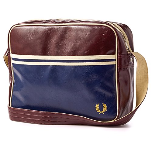 Product Description This classic PVC barrel bag crafted with cotton canvas trims and an additional zip-up compartment at one end. Featuring an outer slip pocket and inner zipped pocket; this spacious barrel bag is ideal for a training session or overnight stay. Complemented by two grip handles, an adjustable shoulder strap and Fred Perry branding on one end, as well as our signature laurel Wreath embossed in gold coloring. 0