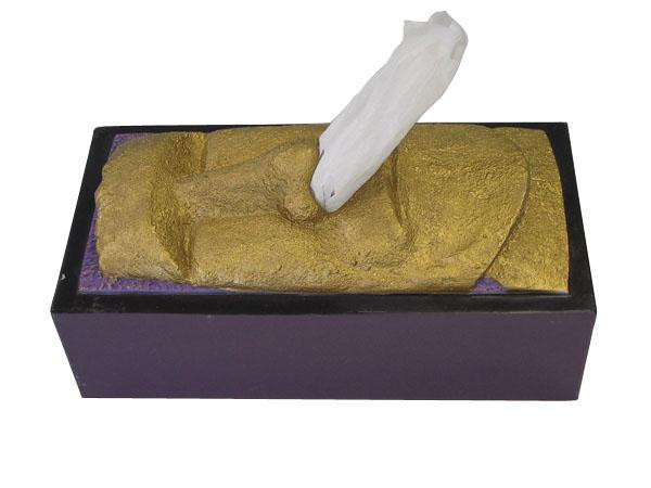 モアイの鼻からなんとティッシュが出てきちゃう!市販のティッシュBOXをセットするだけ♪ちょっと笑えるオシャレなライトギフトに最適です。パッケージは透明のカバードボックスになっています。 製造国:中国 素材・材質:本体:ポリレジン、ケース:ABS樹脂 商品サイズ:130×260×120mm ※サプライヤー直送品 ご注文後2~3営業日後の出荷となります【商品名】おもしろティッシュケース フェイス 黄金のモアイ RH-303