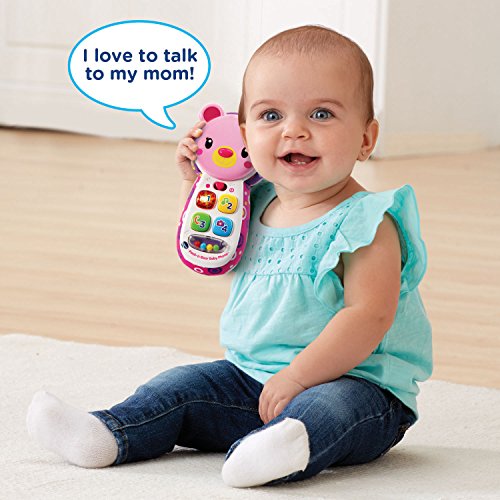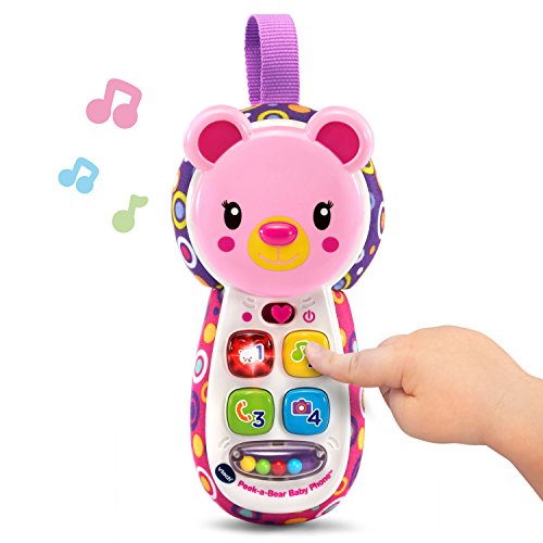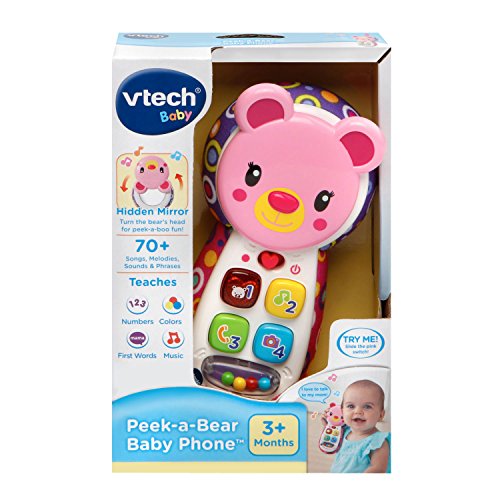 -. Binding : Toy -. Brand : VTech -. EAN : 3417765027505 -. Feature : Turn the bear's head to reveal a baby-safe peek-a-boo mirror / Press the four colorful buttons to learn about numbers and colors and hear playful songs, fun phrases, sounds and music / Heart button flashes as sounds and music play / Soft and colorful padded bumper keeps baby safe from bumps while they learn to coordinate holding the phone up to their ears / Fabric hook & loop fastener attaches to infant seats, strollers and car seats for on-the-go fun. Baby phone toy operates on two AAA batteries that are included, new batteries are recommended for regular use; intended for ages 3 months and up -. IsAdultProduct : 0 -. Label : VTech -. Manufacturer : VTech -. Model : 80-502750 -. MPN : 80-502750 -. NumberOfItems : 1 -. PackageQuantity : 1 -. PartNumber : 80-502750 -. ProductGroup : Toy -. ProductTypeName : TOYS_AND_GAMES -. Publisher : VTech -. Studio : VTech -. Title : VTech Peek-a-Bear Baby Phone - Pink -. Warranty : 90 day warranty against manufacturer defects