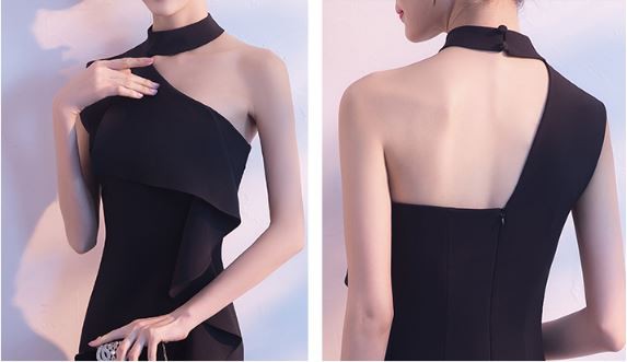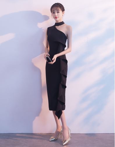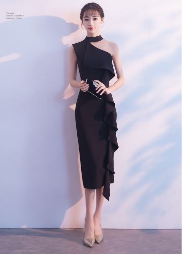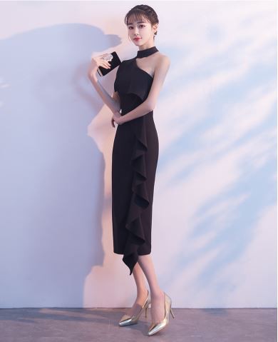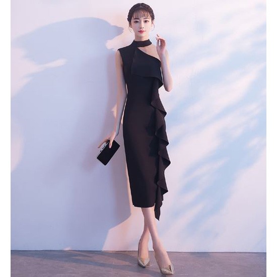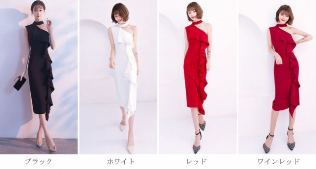 胸元から続く大きなフリルが華やかなドレスです。