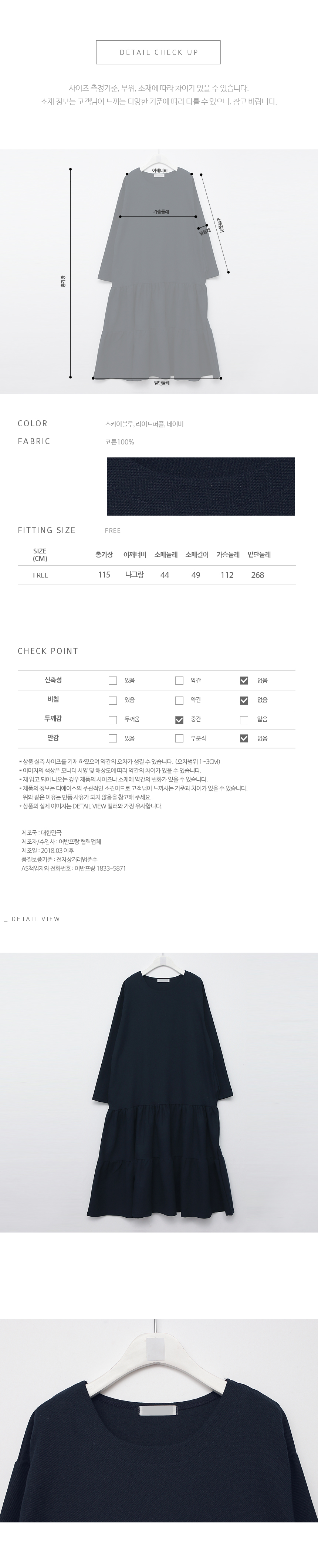 탄탄한 코튼 100%에 긴 길이감으로 경쾌한 2단 플레어 라인의 캉캉 롱 원피스에요 상큼한 컬러들과 편안한 오버핏으로 봄시즌 눈에띄는 데일리 원피스랍니다 색상은 스카이블루, 라이트퍼플, 네이비 사이즈는 FREE 44~66반