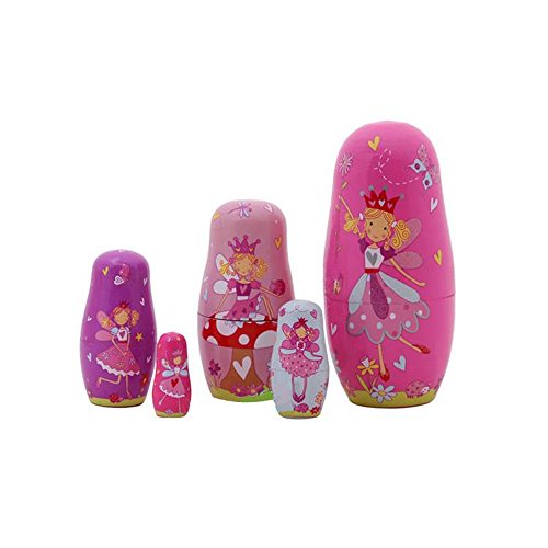 -. Title : 5Pcs Nesting Cute Wooden Russian Hand Painted Stacking Dolls Matryoshka Angel Fairy Pattern 5.7-inch Christmas Gift (Girl Pink)