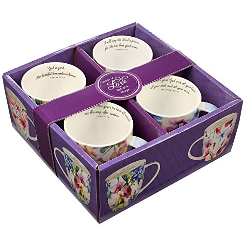 -. Brand : Christian Art Gifts -. Color : Multi -. EAN : 6006937123212 -. Feature : 13 Oz. Capacity / 3 1/2 Inch Tall / Ceramic / Lead & Cadmium-Free Glaze / Microwave & Dishwasher Safe / Gift-Boxed / Manufactured in China -. Label : Christian Art Gifts -. Manufacturer : Christian Art Gifts -. MPN : MUGS03 -. PartNumber : MUGS03 -. ProductGroup : Kitchen -. ProductTypeName : KITCHEN -. Publisher : Christian Art Gifts -. Size : 13 ounce -. Studio : Christian Art Gifts -. Title : Seeds of Love Inspirational Mugs - Set / 4