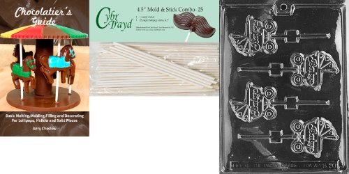 Cybrtrayd 'Carriage Lolly' Baby Chocolate Candy Mold with 25 4.5-Inch Lollipop Sticks and Chocolatier's Guide