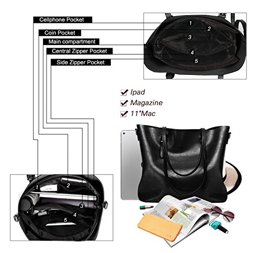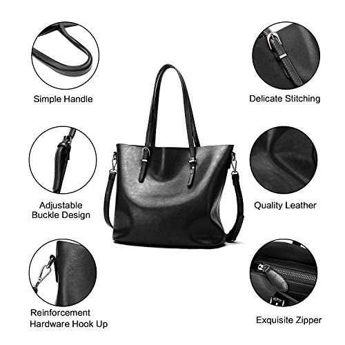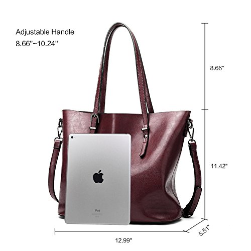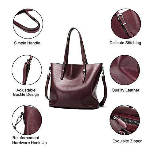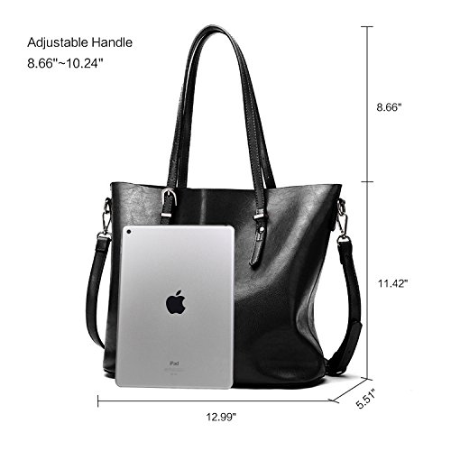 -. Feature : MATERIAL: Made of Oil Wax Leather, durable polyester lining, waterproof.Top Zipper Closure. / DIMENSIONS: 12.99"X5.51"X11.42"(L*W*H). Handle of height: 8.66''~10.24''(Long enough to put on shoulder).Adjustable Height of shoulder Drop: 19.69"~21.65". Weight:about 1.77 lbs.Capacity: 11.9L. / FEATURES:Double leather handles with adjustable and detachable metal buckle;One adjustable and detachable shoulder strap;Delicate stiching;Large Capacity. / STRUCTURE:2 main inner big compartments,1 central zippered pocket,1 inner side zippered pocket ,2 interior open pockets.All stuff can be well organized inside. / Application: Convertible Multi-use. Ideal for shopping, school, college, work, business, dating, travel, daily life etc.