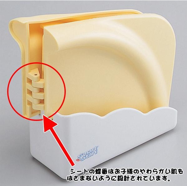 | 大人用便座を子供用に変える、便利な折りたたみトイレシートです。滑り止めパッドもついていてぐらつきにくいです。シートの蝶番はお子様のやわらかい肌をはさまないように設計されています。4つ折りにしてコンパクトに折りたためるので、収納や外出先に便利です。使用しない時に本体を立て掛けておけるスタンドと、携帯に便利な収納ポーチ付き。 |
