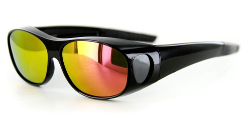 Hideaways provide convenient 100% polarized UV protection while worn over your prescription glasses without the added cost of a separate pair of prescritption sunglasses. These wrap-around shades have high-quality lenses that provide nice, sharp contrast and comfortable viewing during daylight conditions while blocking the sun from all angles. This particular variant of our Hideaways sports youthful mirrored lenses in multiple pearlescent colors that shift and change in the sunlight as well as a polarized coat which elimintaes glare from reflective surfaces. They're also rather narrow and are thus best suited to those with smaller faces. For a wider assortment of our popular Hideaways style, please visit the Big Planet Sunglasses storefront.Feature