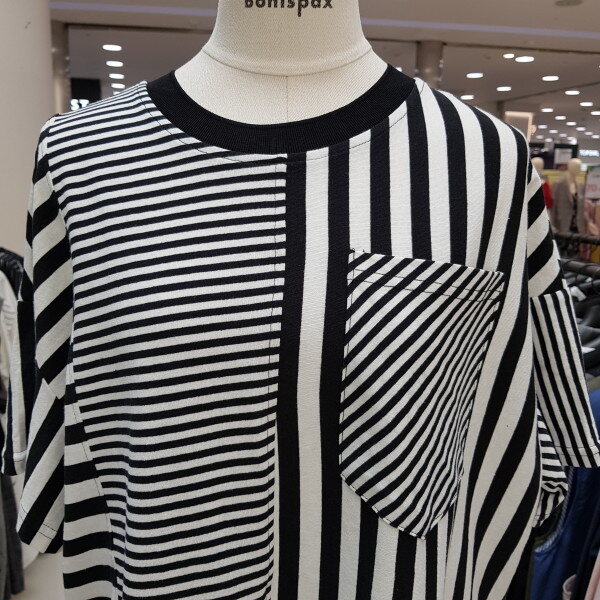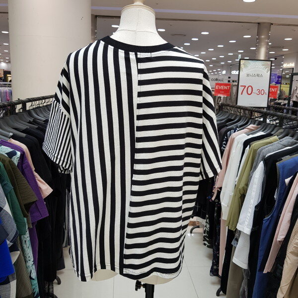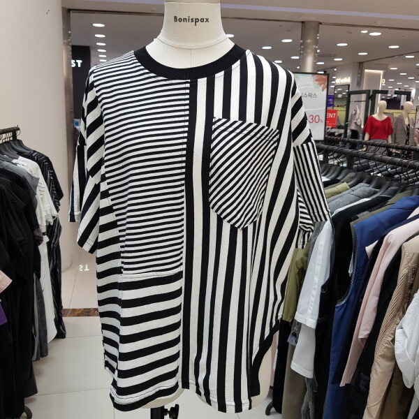스트라이프무늬가 멋스럽게 디자인된 루즈핏스탈의 깔끔한 티셔츠랍니다.