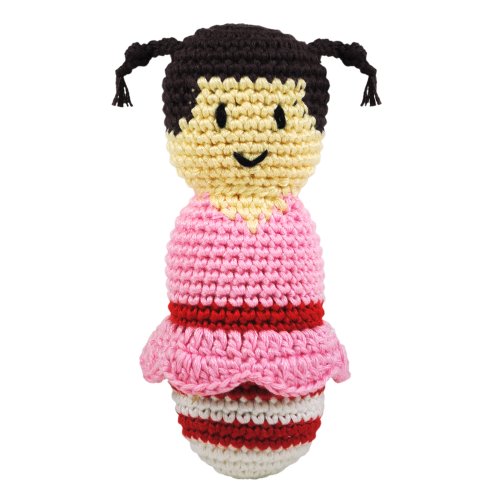 Create fun filled family adventures with your little one. Easy to grasp rattle, ready for make believe and together time. Discover bold colors and shaker sounds, but the fun has just begun. The perfect grow with me toy. As your child grows, so does the world of imaginative pretend play. Pretend play rattles are individually hand crocheted using shiny bamboo fibers, and softly filled with corn stuffing. Non-toxic and tested at the highest standards for safety, Dandelion toys are a natural fit for your family.Feature