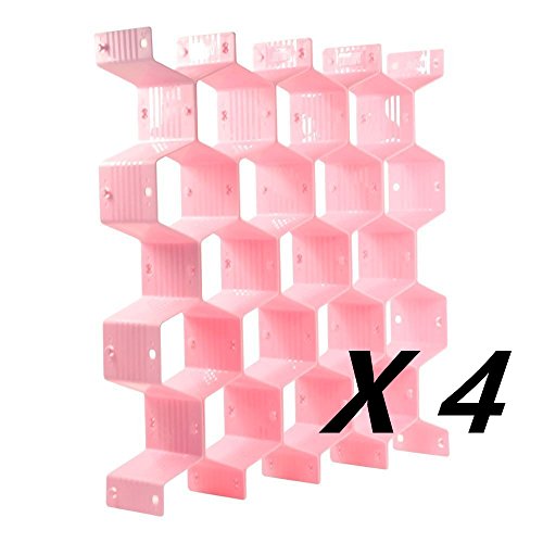 4 Sets of Pink Household Plastic Partition Bee Style Underwear Socks Bras Ties Belts Scarves Drawer Divider Cabinet Clapboard