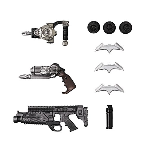 -. Feature : A Medicom import / From the hit Justice League film / Stands 6" tall / Interchangeable hands and faces / Includes Batarangs, grapnel guns, kryptonite gun, smoke grenade, 3 mines and figure stand