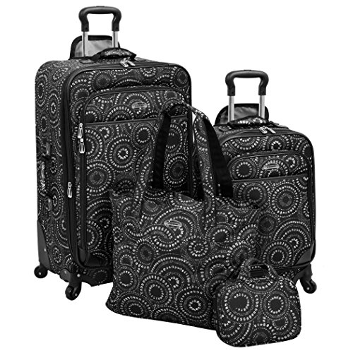 Product Description Buy this all new floral polka dots design suitcase that's durable and could carry loads for your travel. A great item to have. Set Includes: 4 Piece, One (1) 28-inch upright suitcase, one (1) 20-inch upright suitcase, one (1) carry-on tote, one (1) small duffel bag Features: Fashion, Lightweight, Softsided, Expandable, Rolling, Spinner and Durable | Materials: Polyester 0