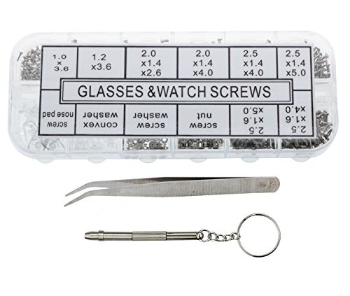 - Package includes: 1100 pieces assorted tiny screws, nuts, washers and 10 Pcs nose pads,1 mini Screwdriver,1 tweezer