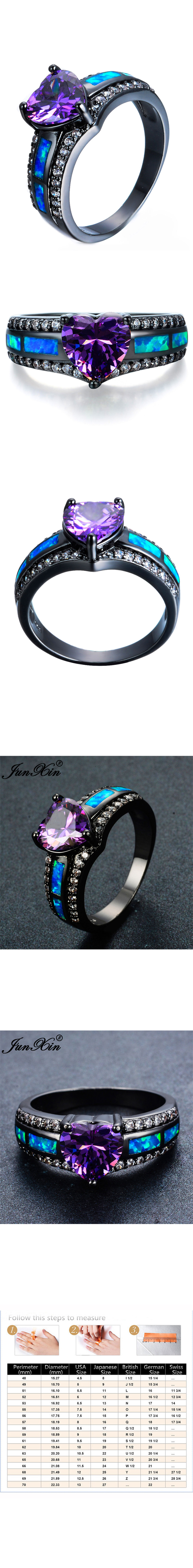 KEM Charm Female Blue Fire Opal Heart Ring Elegant Purple Ring Black Gold Filled Jewelry Vintage Wedding Rings For Women