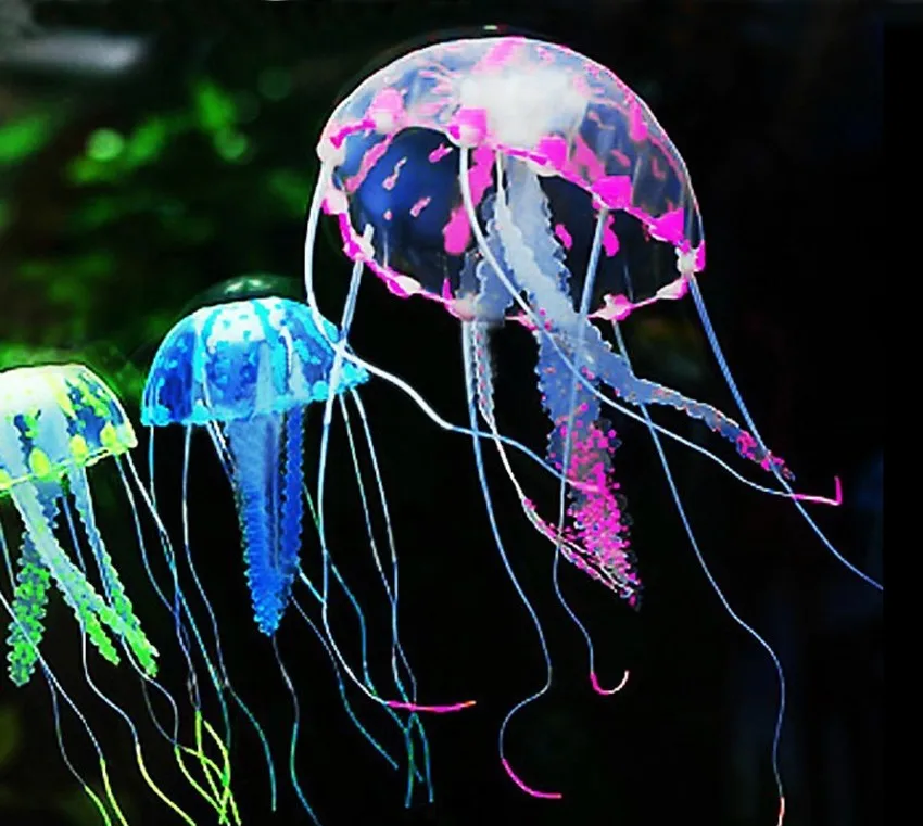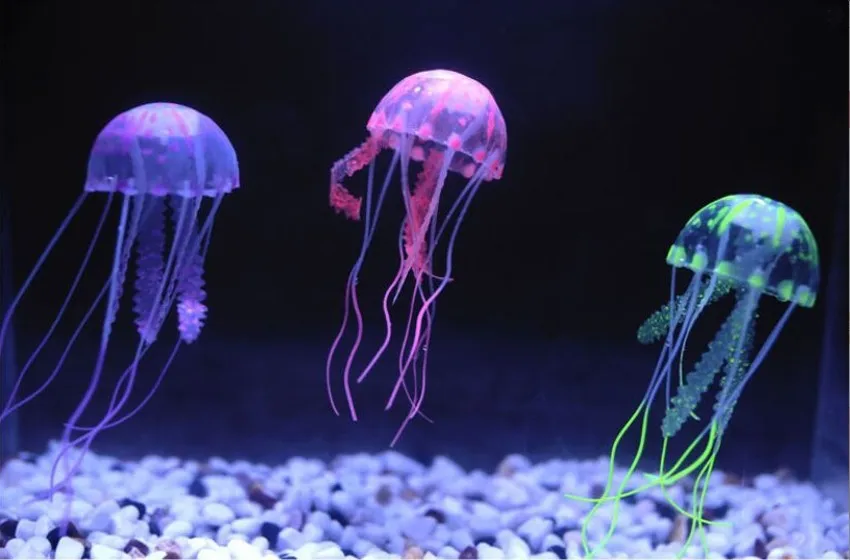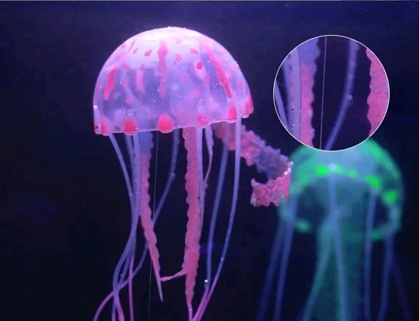 - This is a new flexible・ realistic and vivid Artificial Jellyfish can move by water current in tank. It adds beauty and delight to your aquarium. With it you can build an ideal underwater world. This jellyfish is great ornament for your aquarium.