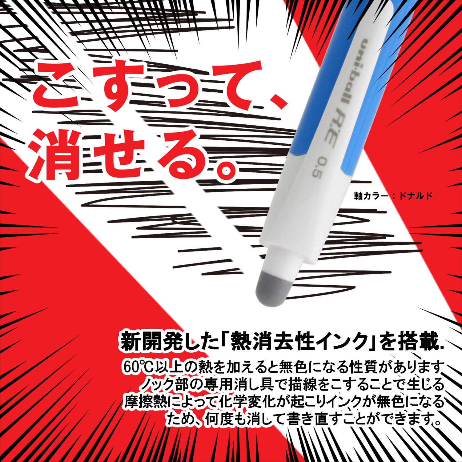 Knock type disappear ballpoint pen, Uniball R: E appearance!