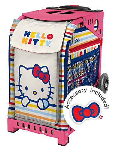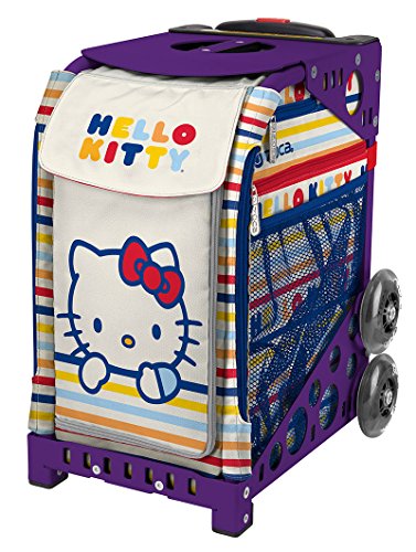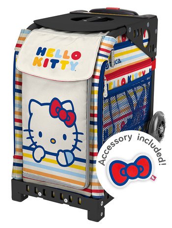 39.5 Telescoping Handle Top Platform Seat - supports up to 300 lbs. Dual 4 Vertically-Mounted Polyurethane Wheels Two Nylon 6 Feet - durable but gentle on easily scratched floors Chrome-plated & Rust Resistant Screws Constructed from 600D Water-Resistant Polyester Vinyl Coated Interior Internal Door Compartments - 2 Pockets & Zippered Storage External Zippered Storage - for Documents & Small Accessories Machine & Hand Washable Includes Matching Hello Kitty KeychainFeature