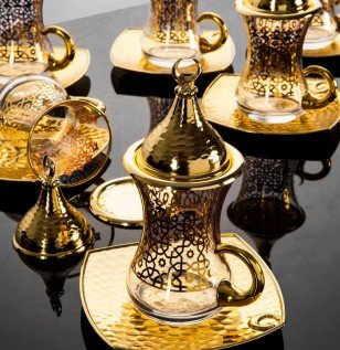 Premium Gold plated Gilded Tea Set for 6 - Made in Turkey - 24 pieced set, Gilded-Gold
