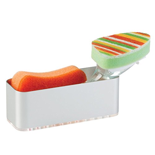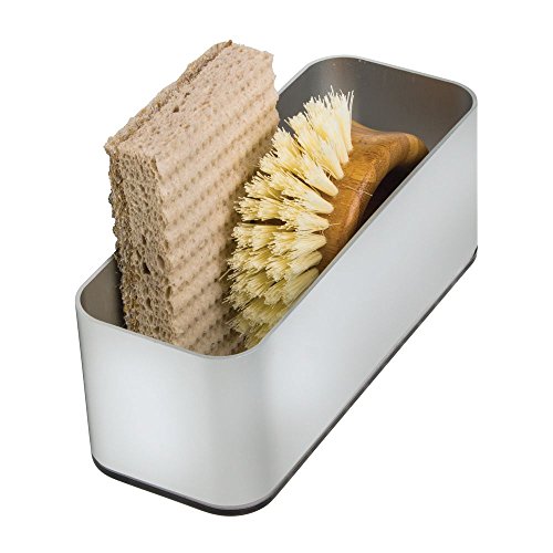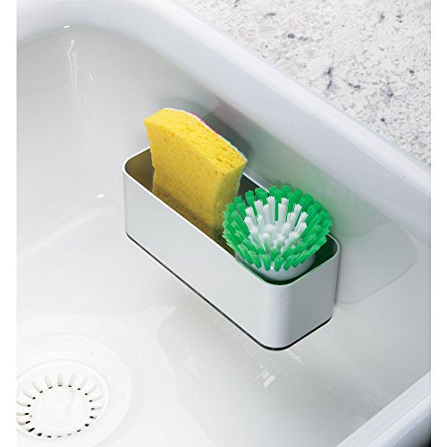 InterDesign AFFIXX, Peel-and-Stick Strong Self-Adhesive Rustproof Aluminum Kitchen Sink Suction Holder for Sponges, Scrub Brushes - Silver/Smoke