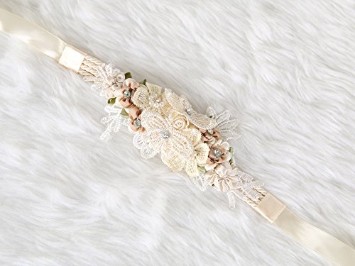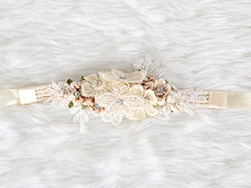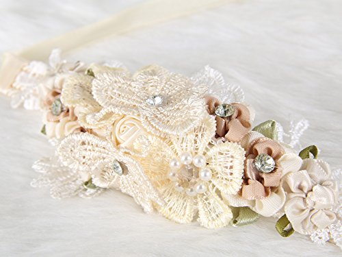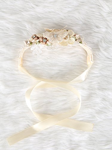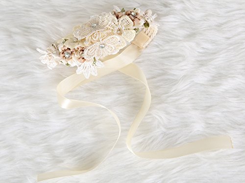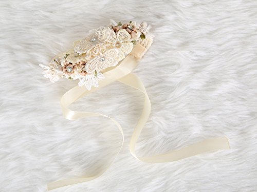 Floral Wrist Corsage butterfly lace Wedding Bridal Bridesmaids (Beige)