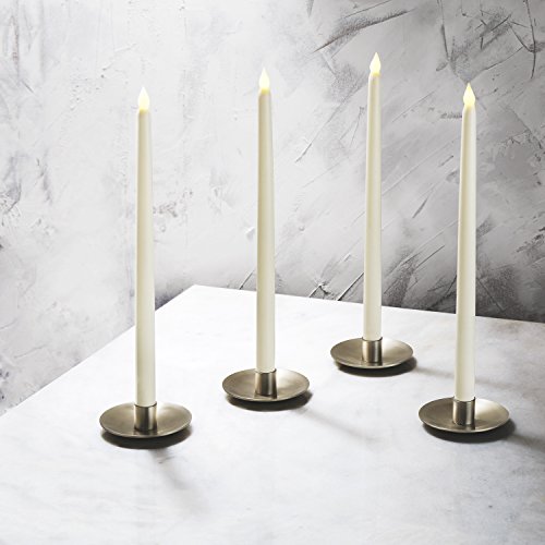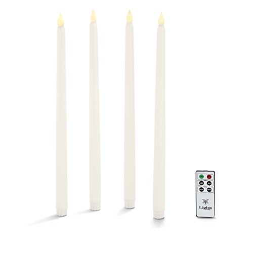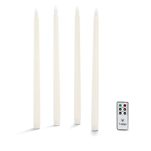4 Ivory Flameless Taper Candles with Warm White LEDs, Tall 15", Wax, LampLust Vigil Collection, Batteries and Remote Included
