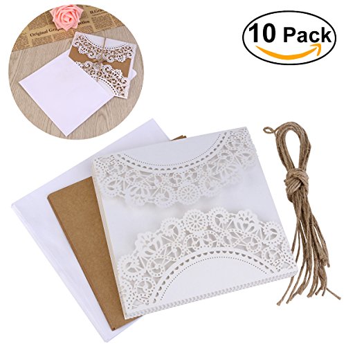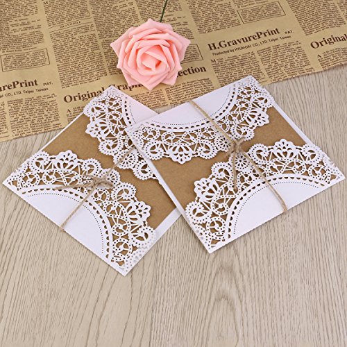 Package Including 10 * UEETEK European Style Hollow Out Decorative Pattern Wedding Invitation Card Greeting Card Congratulation Card with Envelope (White) 10 * UEETEK Hessian Ropes 0