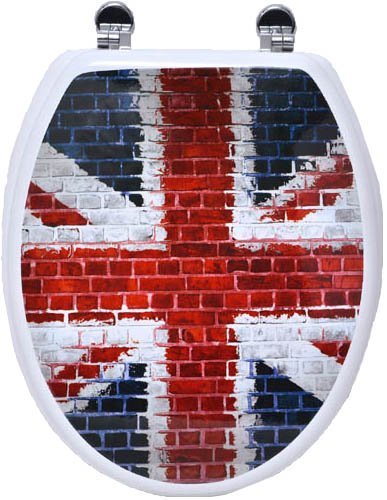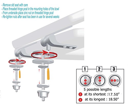 -. Feature : CHECK CAREFULLY THE SIZE NEEDED , this toilet seat is 17.5"L X 14.75"W / Made of MDF (wood), comfortable with 4 bumpers / It has adjustable zinc alloy hinges (3 positions-5 possible lengths) / Complete your decoration with other products of the collection Union Jack / Imported, color blue and red,elongated toilet seat, fits mainly toilet bowls