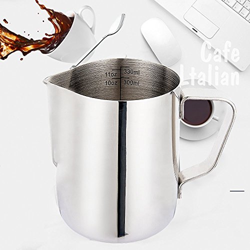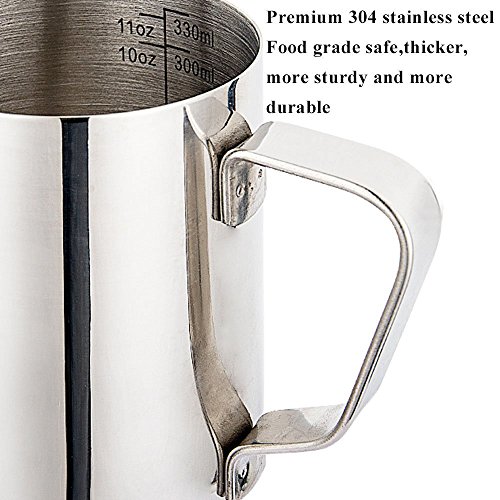 Feature: 304 Stainless Steel, food safe and durable Dishwasher-safe construction for easy cleaning Extra-thick heat-resistant handle for safe, comfortable use Drip less and Tapered spout design make you create latte art fast and better Ideal for Barista Cappuccino Espresso Coffee Cafe Maker 0