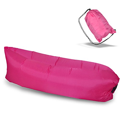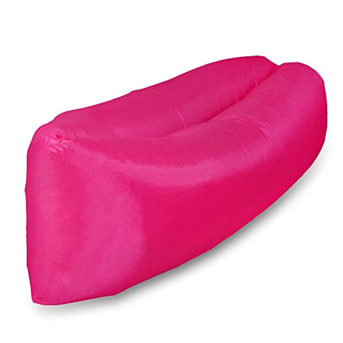 Zenoplige Ultimate OutdoorInflatable Air Lounger Nylon Fabric Sleeping Compression Air Bag with Tent Stakes (Pink-Without Pocket)