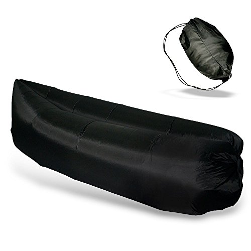 Zenoplige Ultimate OutdoorInflatable Air Lounger Nylon Fabric Sleeping Compression Air Bag with Tent Stakes (Black)